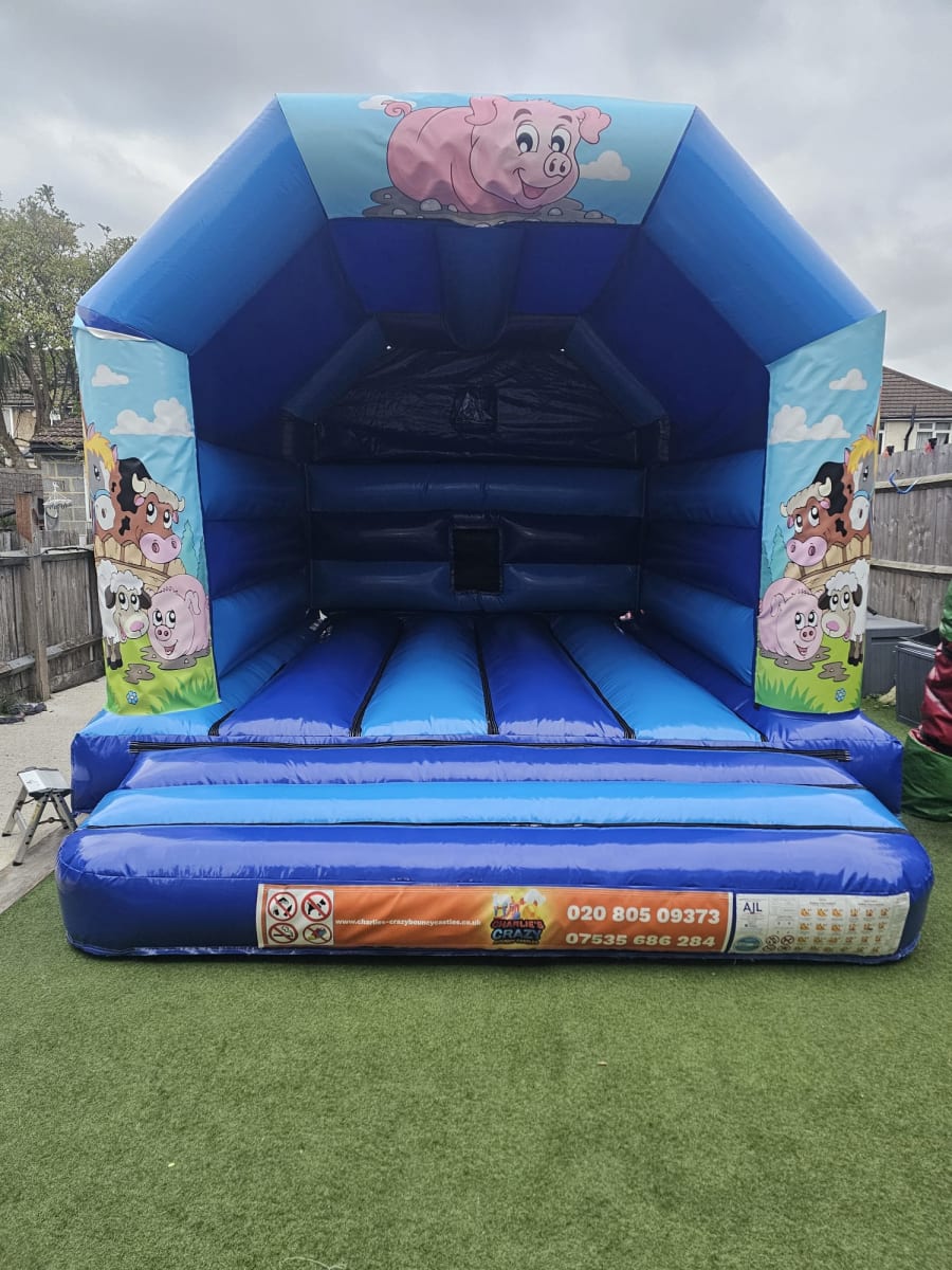 Bring the countryside to your party with our Light & Dark Blue Farmyard Bouncy Castle hire – the perfect inflatable for fun, laughter, and unforgettable memories!
