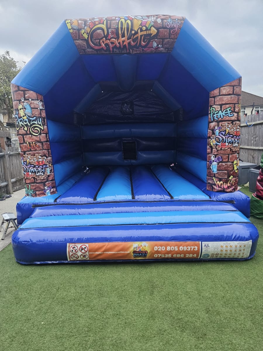 Add an urban, artistic twist to your party with our Light and Dark Blue Graffiti Bouncy Castle! Featuring vibrant graffiti-inspired graphics and a striking two-tone blue design, this inflatable is perfect for any street art or urban-themed birthday party. Kids will love bouncing, jumping, and expressing their creativity in a colourful and fun environment!