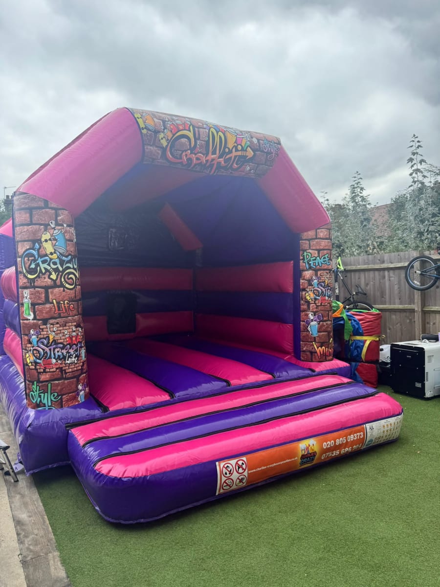 Book your Pink & Purple Graffiti Bouncy Castle today and add a bold, colourful touch to your celebration!