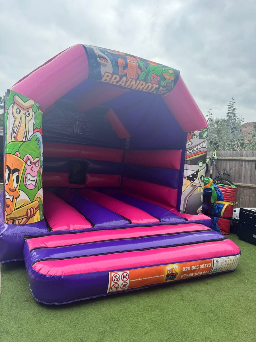 The Pink / Purple Brian Rots Bouncy Castle features a striking design inspired by the playful Brian Rots theme — full of colour, character, and excitement. Made from durable, high-quality materials and safety-checked before every hire, this inflatable is ideal for both indoor and outdoor use.