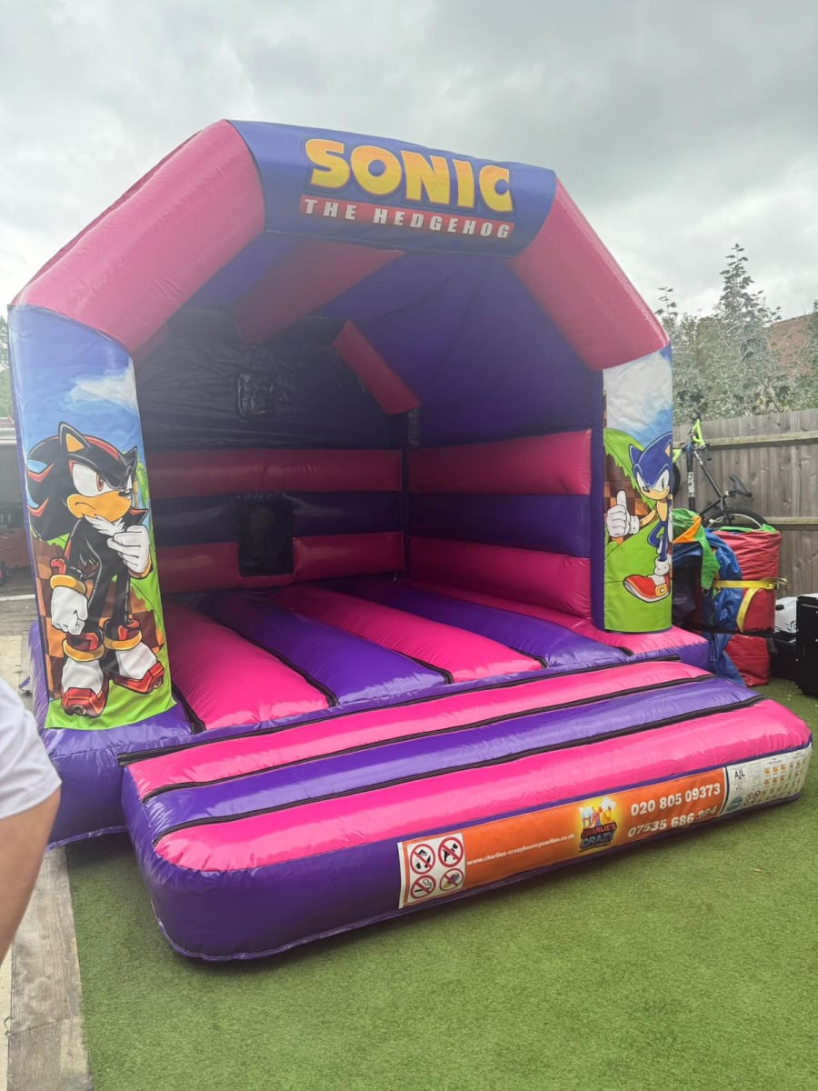 Book your Pink & Purple Sonic Bouncy Castle today and give your guests an action-packed, memorable celebration!