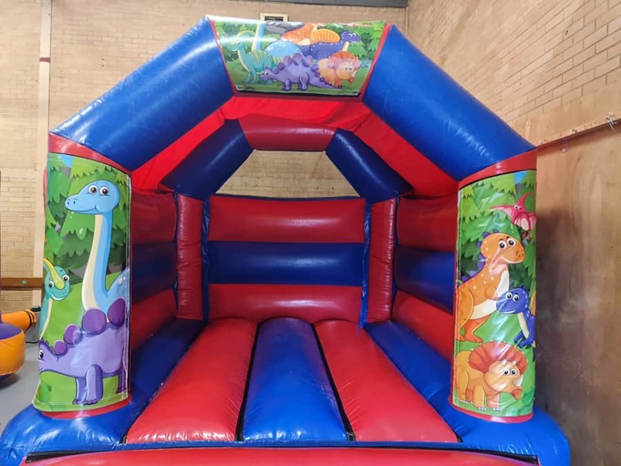 Our red / blue dinosaur bouncy castle is one of our most popular options, and it's perfect for children's parties! It features a bright and colourful design that will make any party or event more fun! It's also great for indoor or outdoor use, so you can use it no matter what the weather is like!