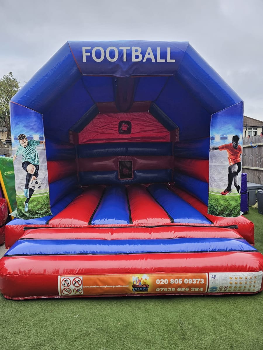 Kick off the fun with our Red & Blue Football Bouncy Castle! Perfect for birthdays, school events, sports days, and family parties, this exciting inflatable is designed for little football fans who love to bounce, play, and celebrate in style.
