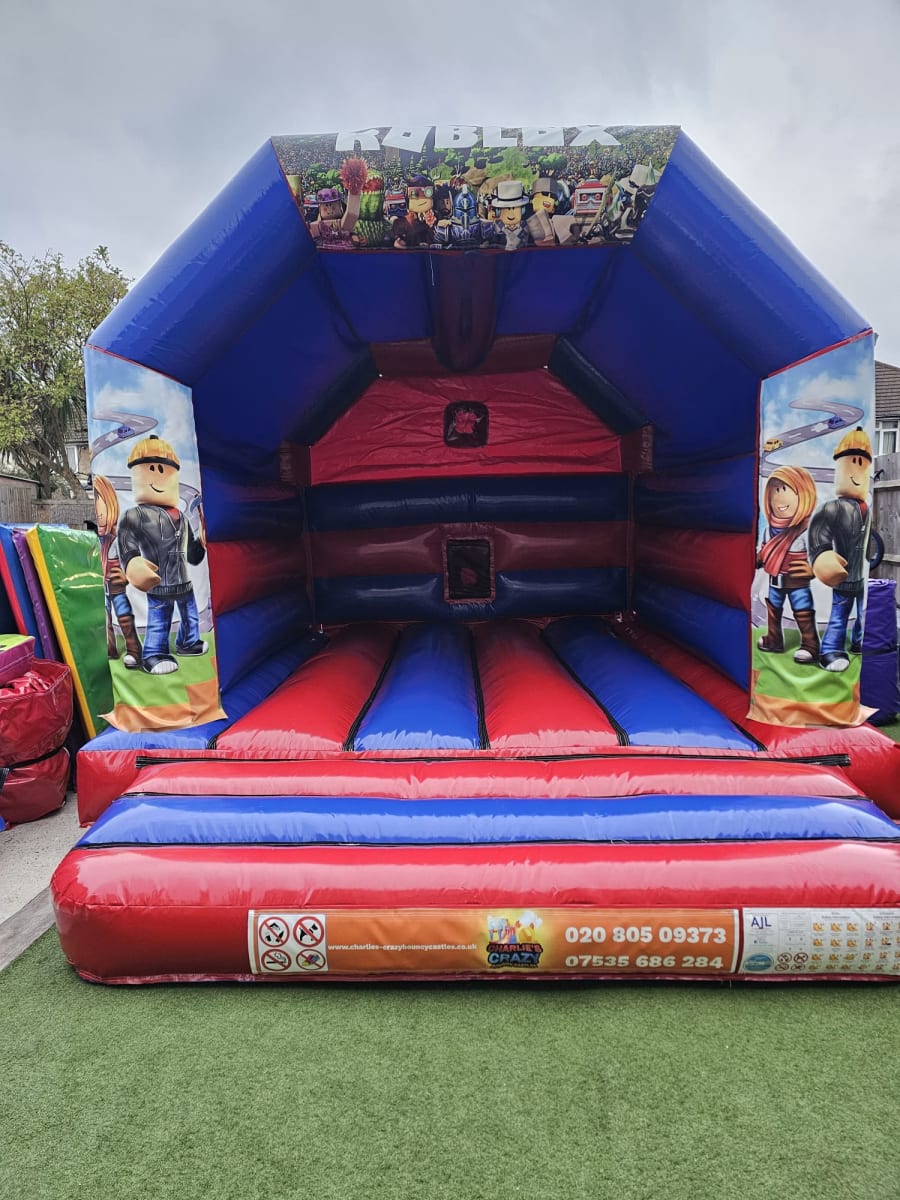 Red & Blue Roblox Bouncy Castle Hire in Greenwich, Eltham & Woolwich | Charlie’s Crazy Bouncy Castles