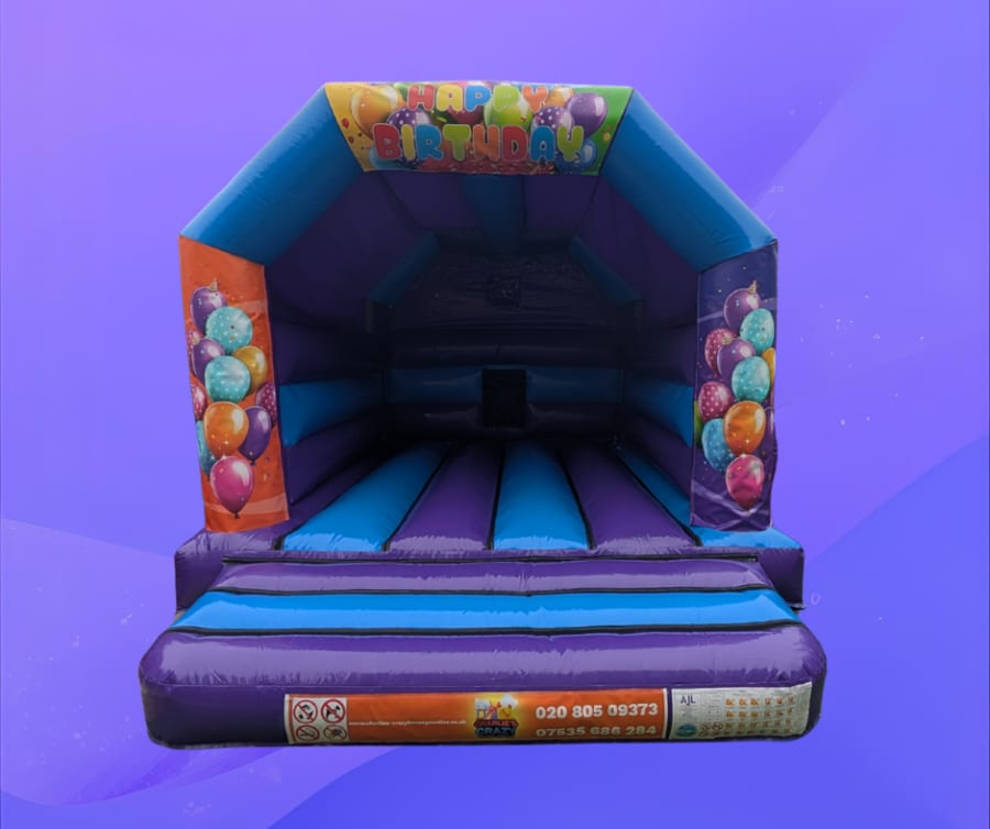 Add a burst of fun and colour to your celebration with our Purple and Blue Happy Birthday Bouncy Castle hire – the perfect choice for an unforgettable party!