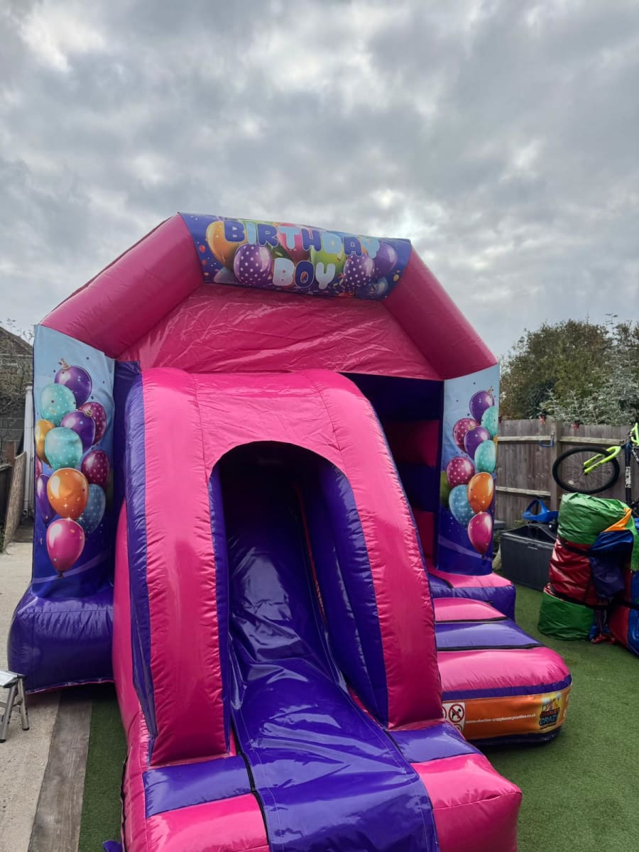 Perfect if you’re searching for birthday boy bouncy castle hire, pink & purple bouncy castle with slide, kids birthday inflatable, or bouncy castle hire near me.