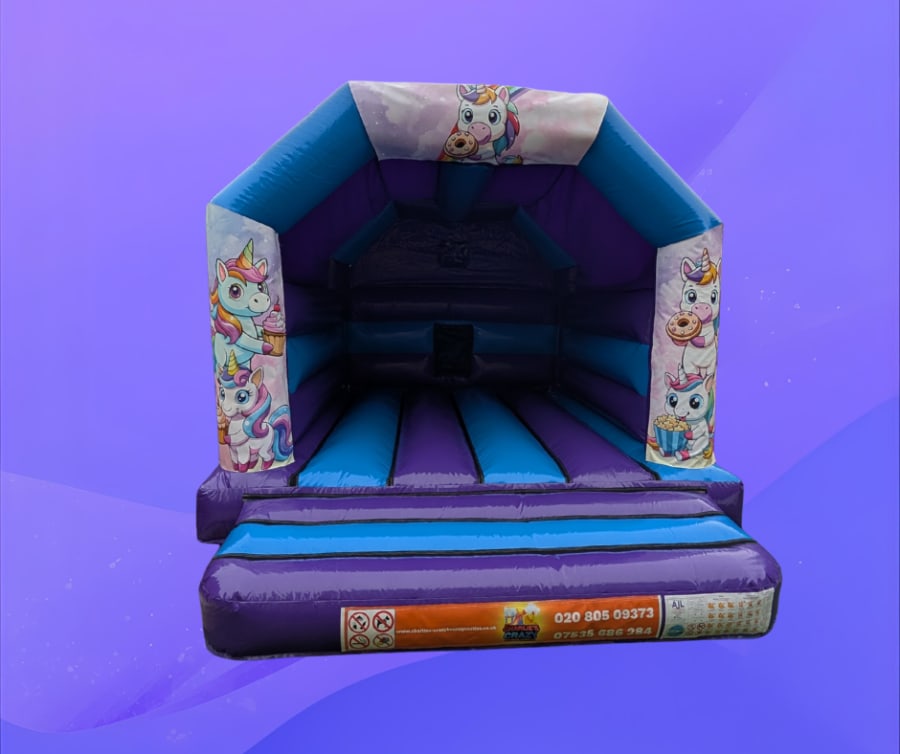 Add a touch of magic to your next celebration with our Unicorn Bouncy Castle in purple and blue! Bursting with bright colours and enchanting unicorn graphics, this inflatable is perfect for any unicorn-themed birthday party or special occasion. It’s sure to spark imaginations and create hours of safe, bouncy fun for children of all ages.