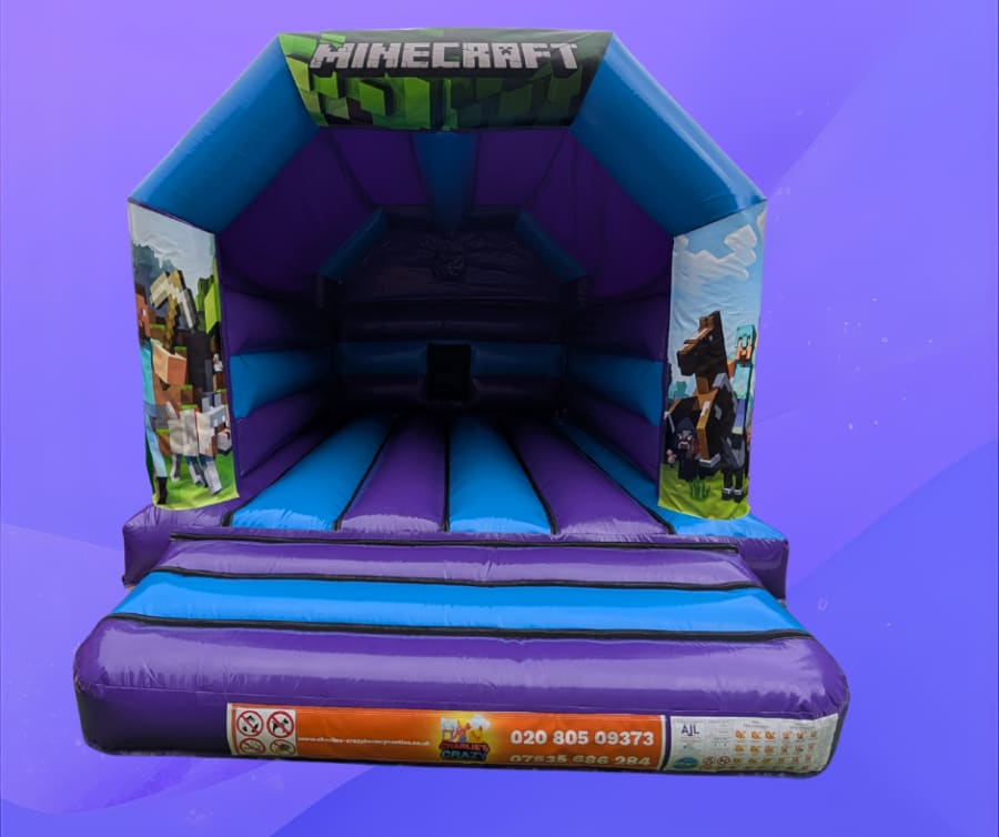 Make your party block-tastic with our Purple and Blue Minecraft Bouncy Castle hire – the perfect inflatable for Minecraft fans and fun-filled celebrations!