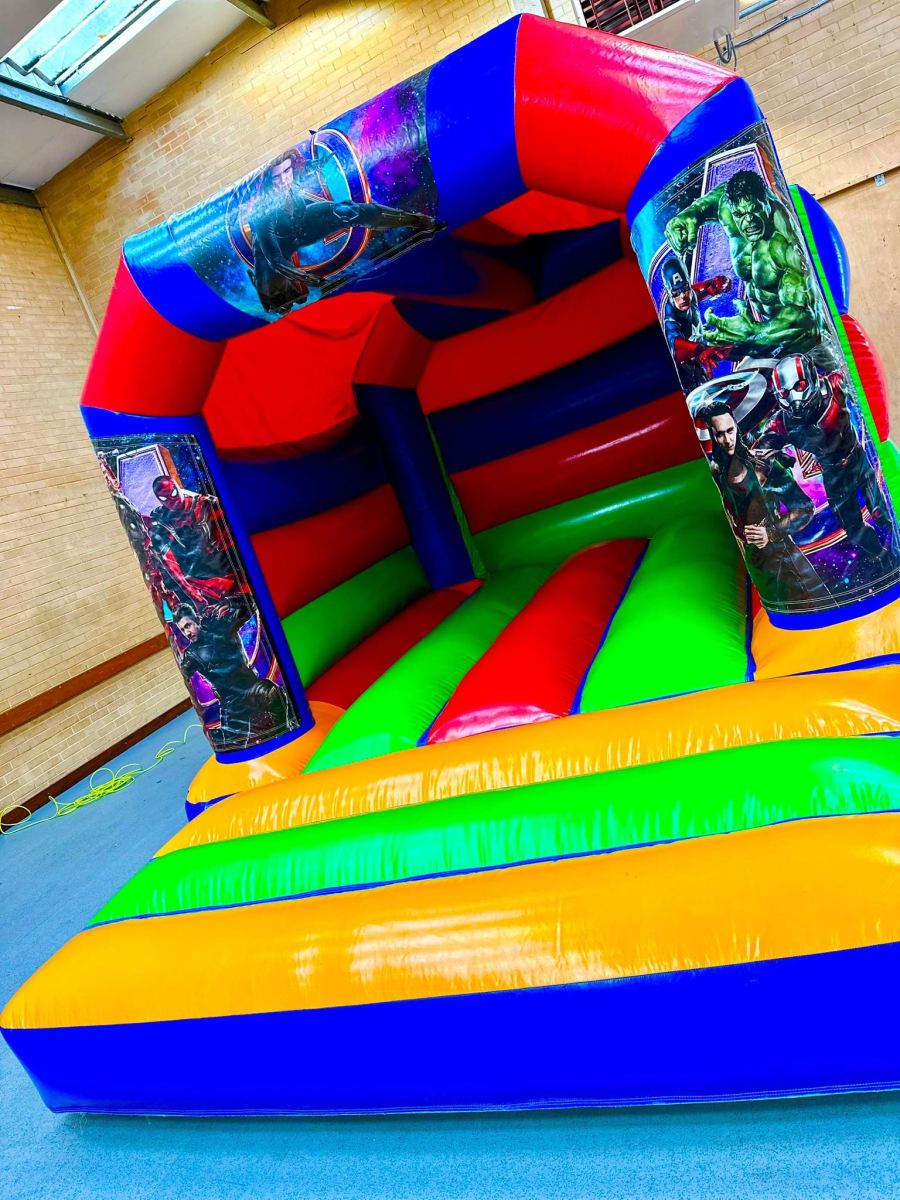 Looking for a bouncy castle that fits perfectly in a hall with low ceilings? Look no further! Our Low Height Avengers Castle is just what you need. With a height of under 9 feet, it's designed to bring endless fun to your little ones while ensuring it fits comfortably in your chosen venue.