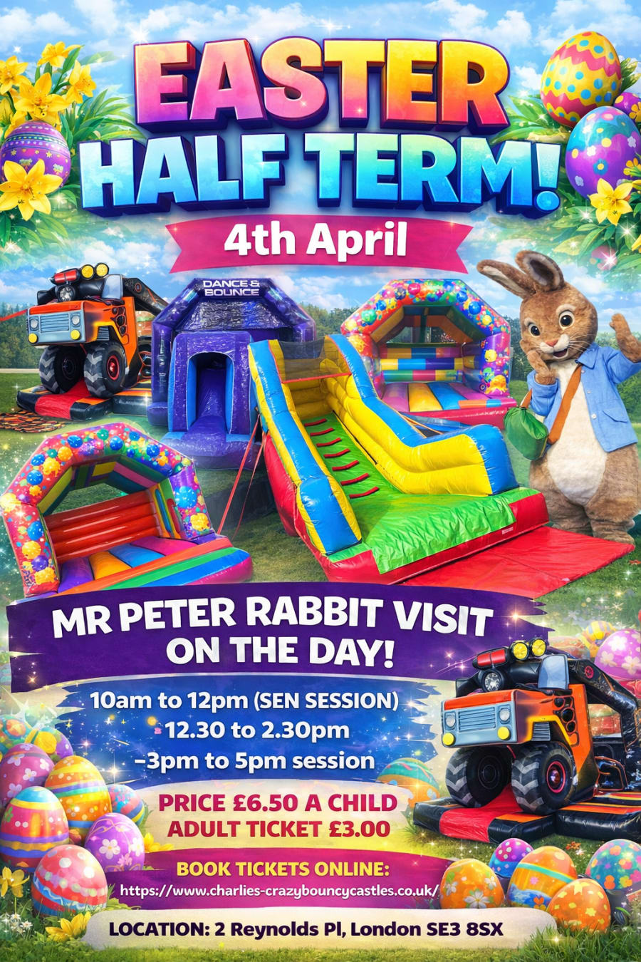 Join us for an action-packed Easter Half Term family fun day filled with inflatables, bouncing, sliding and a special visit from Mr Peter Rabbit π°β¨