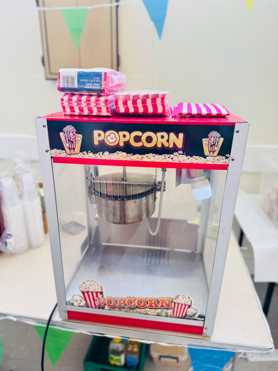Bring the fun and flavour of the cinema straight to your event with our top-of-the-line Popcorn Machine. Perfect for birthday parties, family gatherings, school events, weddings, and community celebrations, this machine is guaranteed to be a hit with guests of all ages. Enjoy the delicious aroma and taste of freshly popped popcorn wherever your party takes place!